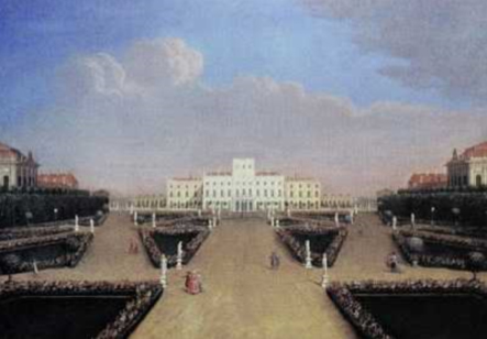 On his arrival Tepper de Ferguson receives possibility of visiting the famous gardens and he receives also the tickets for the theatre, where in the evening he will be able to meet Haydn in person. Tepper de Ferguson recognizes Haydn immediately thanks to Haydn's many portraits.