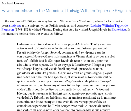 Haydn and Mozart in the Memoirs of Ludwig-Wilhelm Tepper de Ferguson