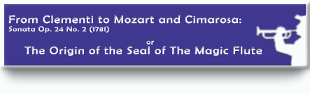 A lesser known conclusion of this story is that also Cimarosa, when presenting the Vienna premiere of his most successful Il Matrimonio Segreto on 7 February 1792 at the Vienna Imperial Palace, shows in his music various bars, that, according to some scholars, are clearly derived from the same opening motif of Clementi's 1781 Sonata and re-used by Mozart for The Magic Flute (1791).